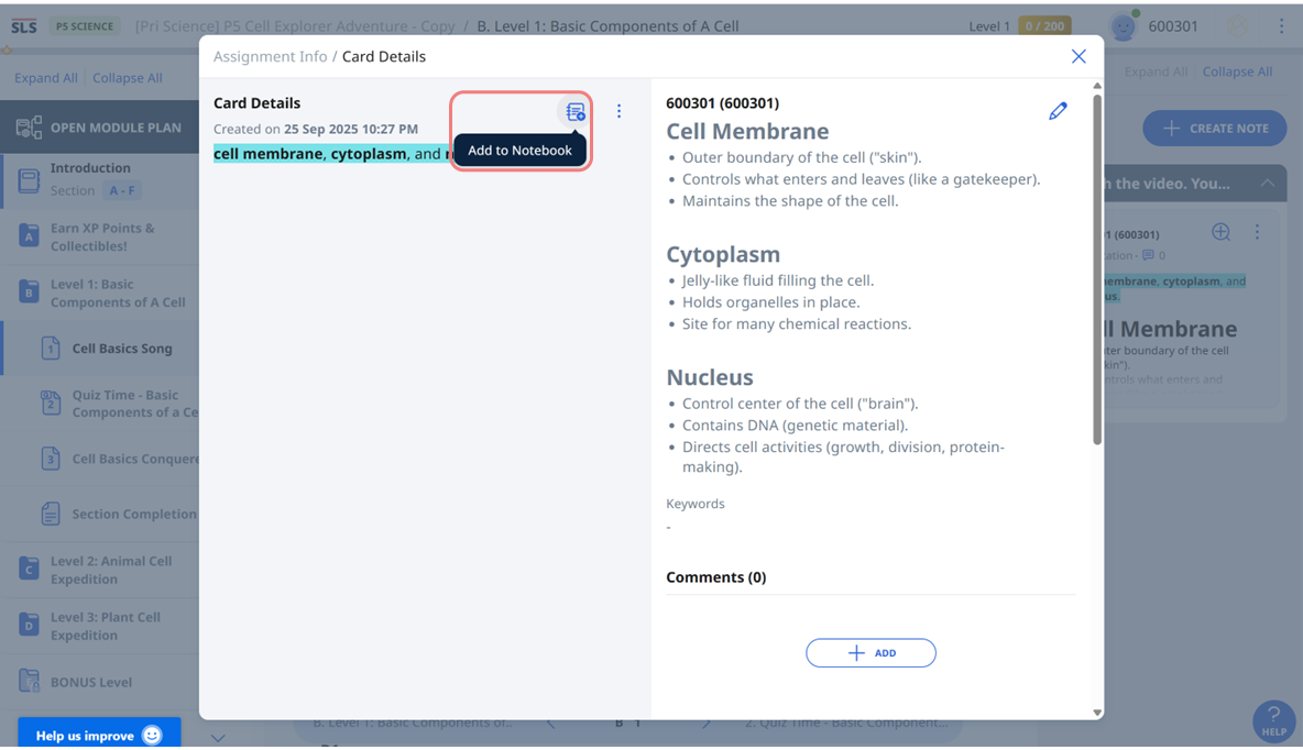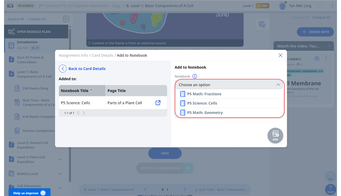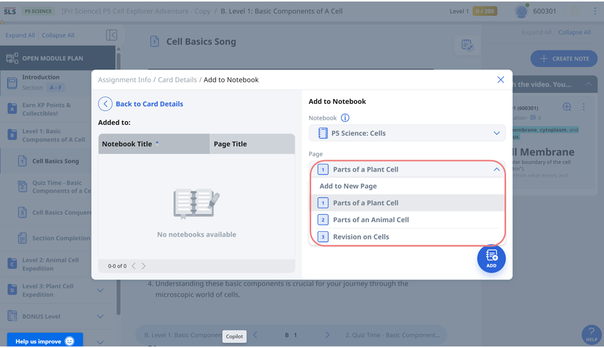 Add Notes from Assignments or Self-Study modules into a Notebook