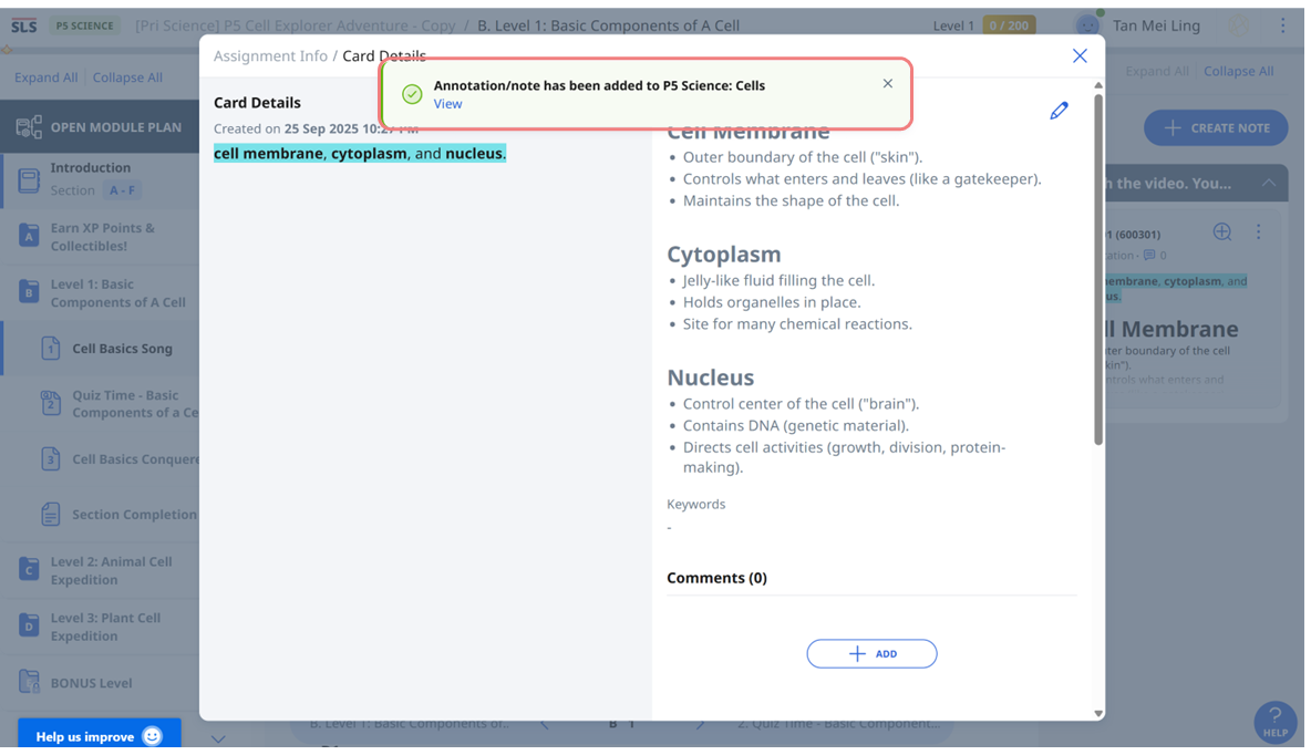 Students can create their own notebooks for note-taking and add notes from assignments, consolidating everything in one place. They can also organise their notebooks into categories, making it easy to locate and build upon their notes, which helps make revision more effective.