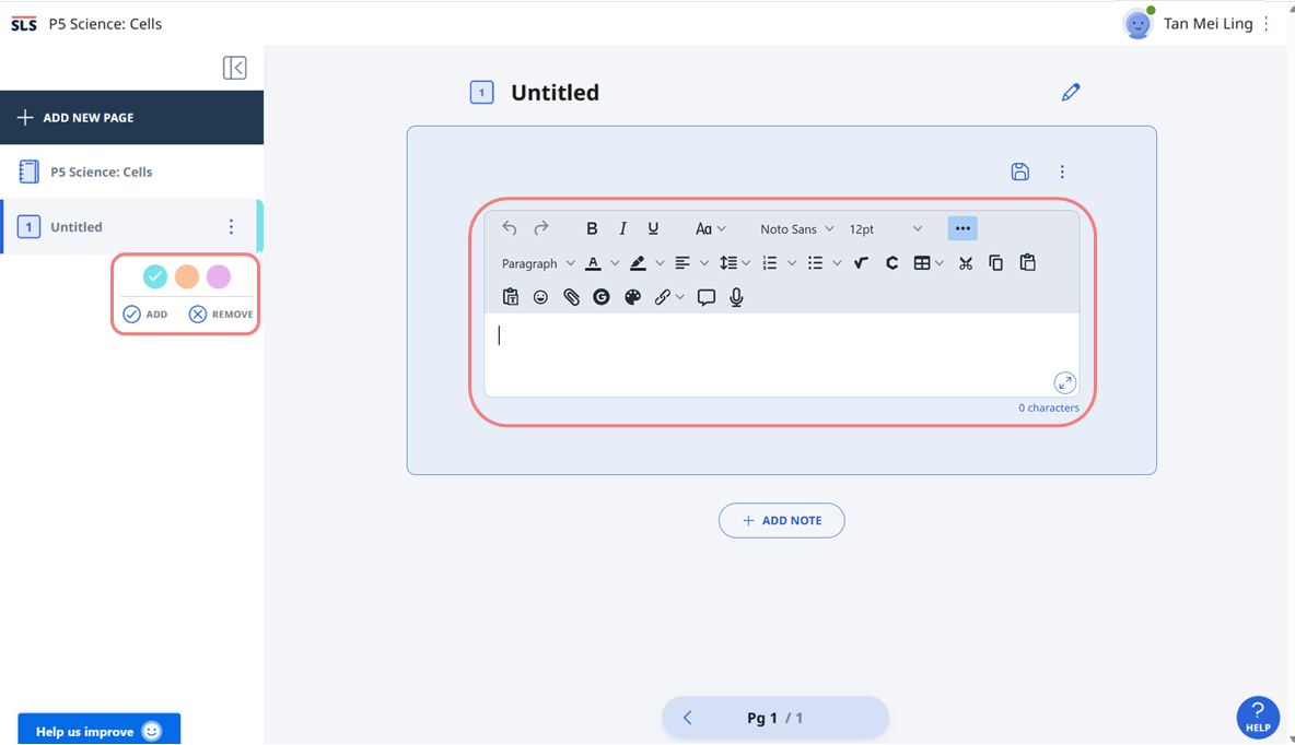 Click Add Note to add content to each page. Click the 3-dot icon to expand or collapse the Rich Text Editor and use its tools to insert content. Learn more about the Rich Text Editor here.