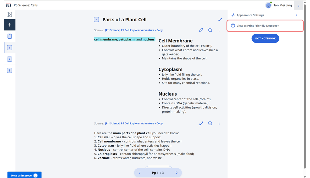 When notes are edited in either My Notebooks or Assignment/Self-study module, the changes will be reflected in both.