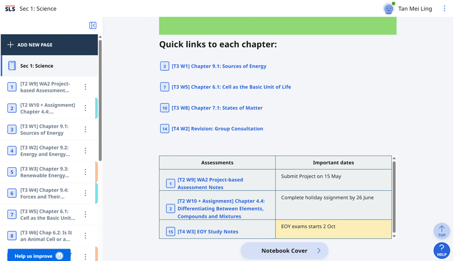 Note: After organising your notes, you can create a contents page on the notebook cover by inserting links to other notebook pages in the description section.