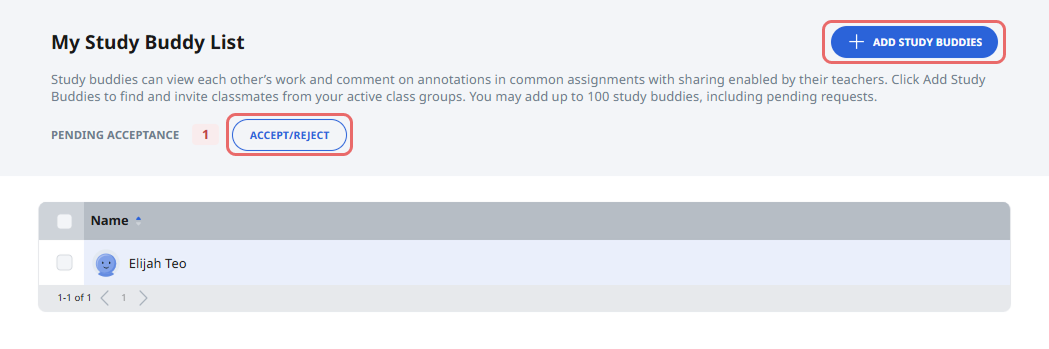 From the Dec 2025 Update, students can maintain a Study Buddy List which automatically shares shareable assignments enabled by teachers, so that students can see each other’s work for revision, peer review, sharing of assignment notes and answers.