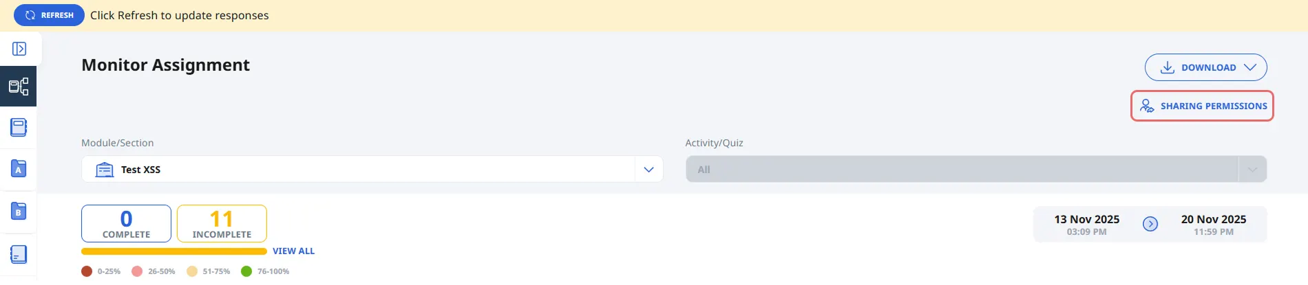 Teachers can also click on the notification to open the heatmap and review the completion status, before deciding whether to enable sharing by clicking on Sharing Permissions and checking the box Allow students to share this assignment.